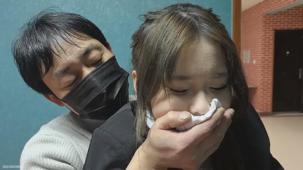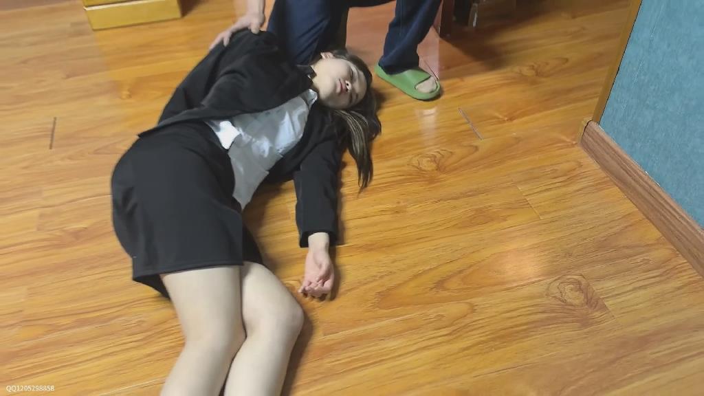 女贼是一个惯犯,经常偷偷潜入房屋内进行盗窃!这一天,警察的家房门突然忘记上锁了,女贼不知道这里住着的是一位警察,于是恰好在房门口小心翼翼地把门锁撬开溜了进去,女贼便开始在客厅的柜子和抽屉里进行翻找看有没有什么值钱的东西。不巧的是警察房主刚好下班回家,当女贼还在进行翻找东西时,警察房主已经出现在她的身后,手拿毛巾小心翼翼地靠近女贼,用毛巾捂住了女贼的口鼻,女贼拼命地挣扎,挣扎持续半分钟后被迷晕,惊慌的眼神渐变涣散,警察房主将女贼迷晕后放倒在地上,于是便说道:“小偷敢跑到我家里来偷东西,居然还是个小美女,看我待会怎么惩罚你。