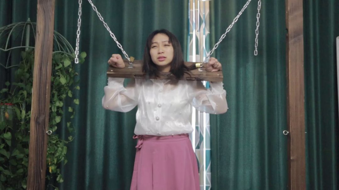 会所游记 (上集)温婉女子在会所参加体验各种调教 木枷束缚 鞭打 后手大字束缚