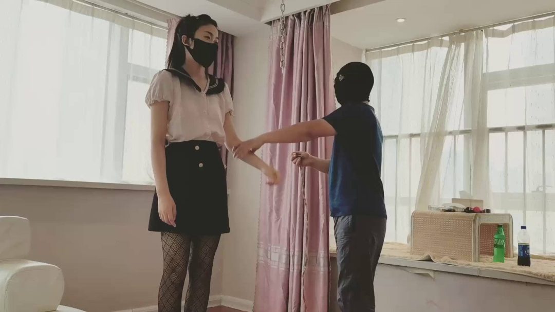 空姐嘉宝,白丝袜,捆绑之后挣扎,逃跑被抓回。被迫在屋子里狗爬,跪姿,服从。