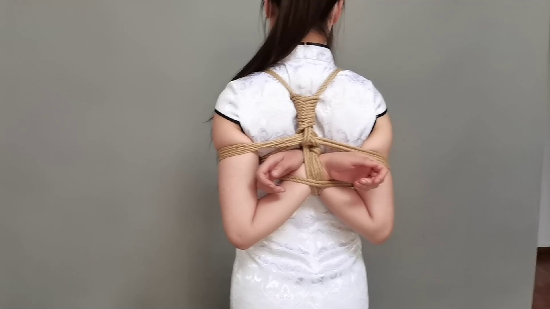 小白被女绳师紧紧捆绑起来
