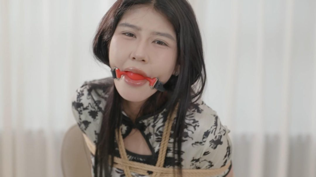 斜阳下的紧缚,胸缚,黑丝,口球,超短裙