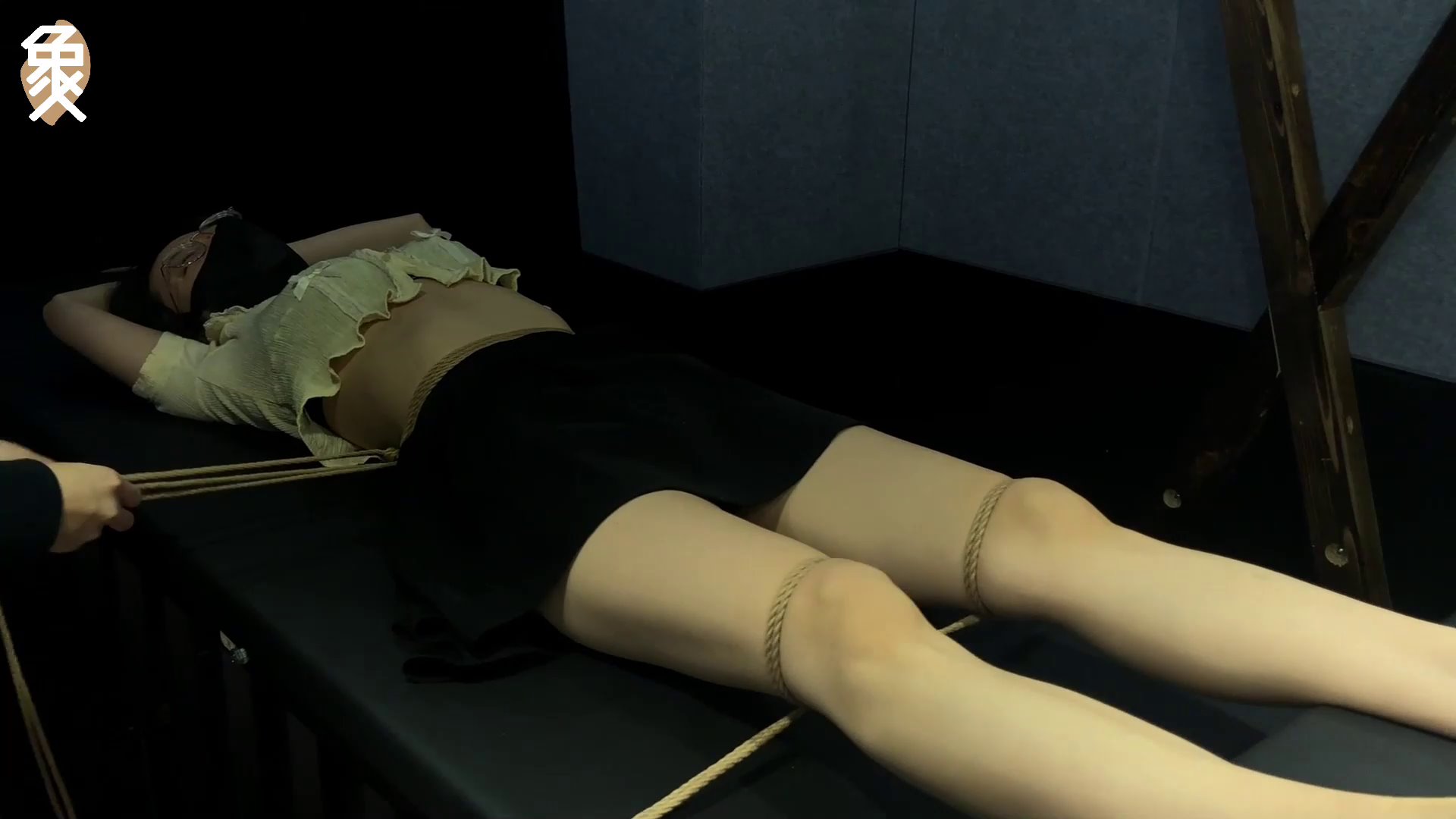 长腿美女文文大字型站立束缚、蒙眼